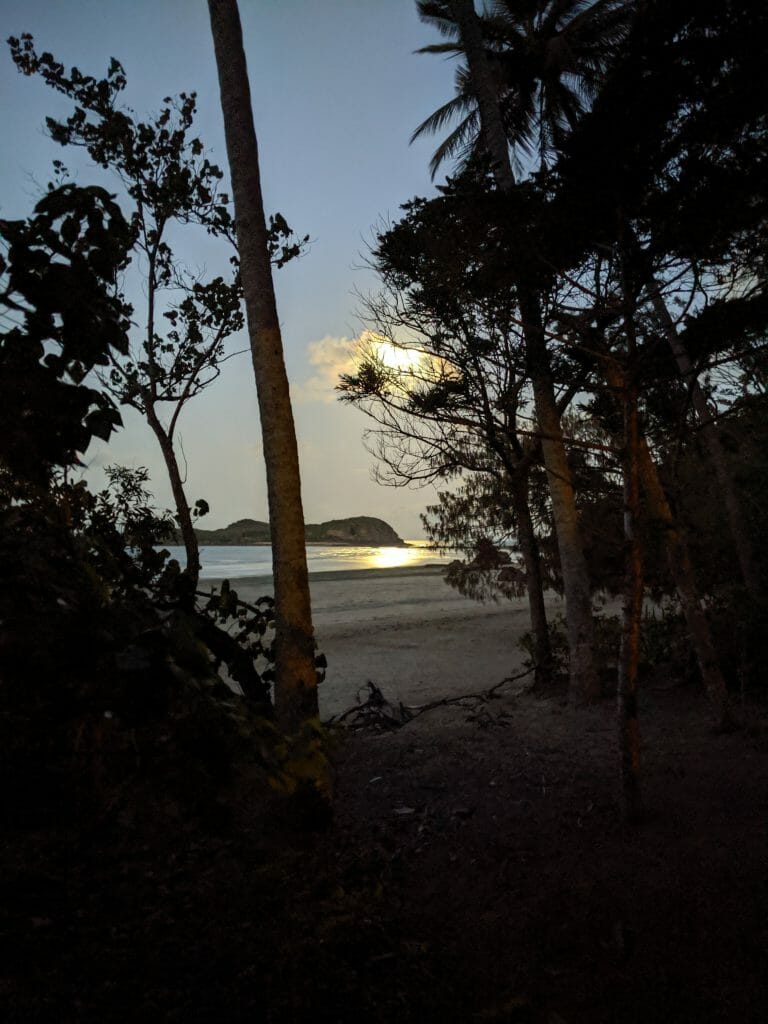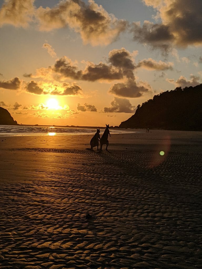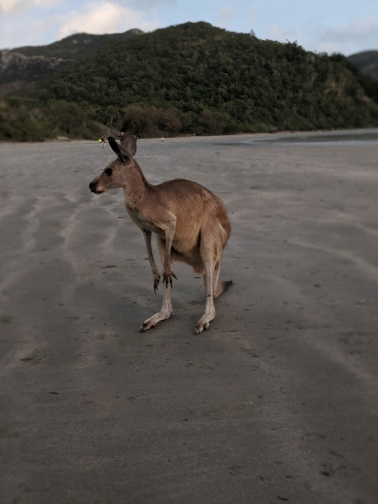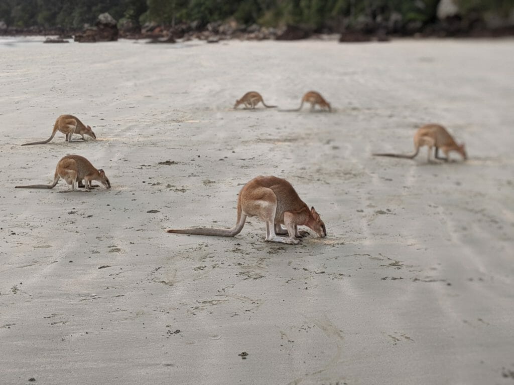 Übernachtet haben wir in Cape Hillsborough im Nationalpark. Dort kommen um fünf Uhr die Kängurus und Wollabies an den Strand. Das haben wir uns natürlich nicht entgehen lassen.