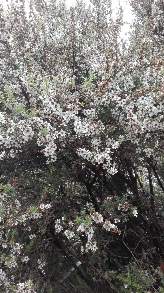 Manukahonig wird aus den Blüten des Baumes hergestellt. Die Bienenstöcke sind im ganzen Land verteilt.